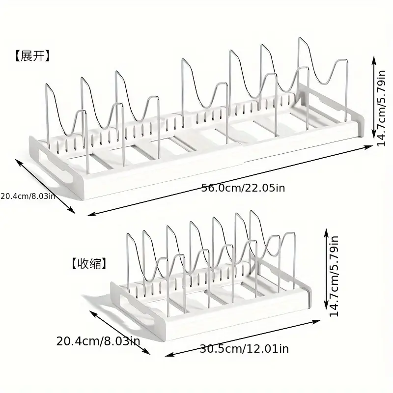 Constructed from sturdy plastic, the rack offers durability without adding unnecessary weight. Its sleek design complements modern kitchen aesthetics while remaining practical for everyday use. The adjustable functionality ensures compatibility with various cookware collections, making it an essential tool for any kitchen. Effortless to assemble and maintain, this pot organizer provides a hassle-free way to streamline your space. Ideal for busy households, it helps maintain a tidy, efficient kitchen setup. Say goodbye to messy cabinets and hello to seamless organization with this practical and stylish storage solution.