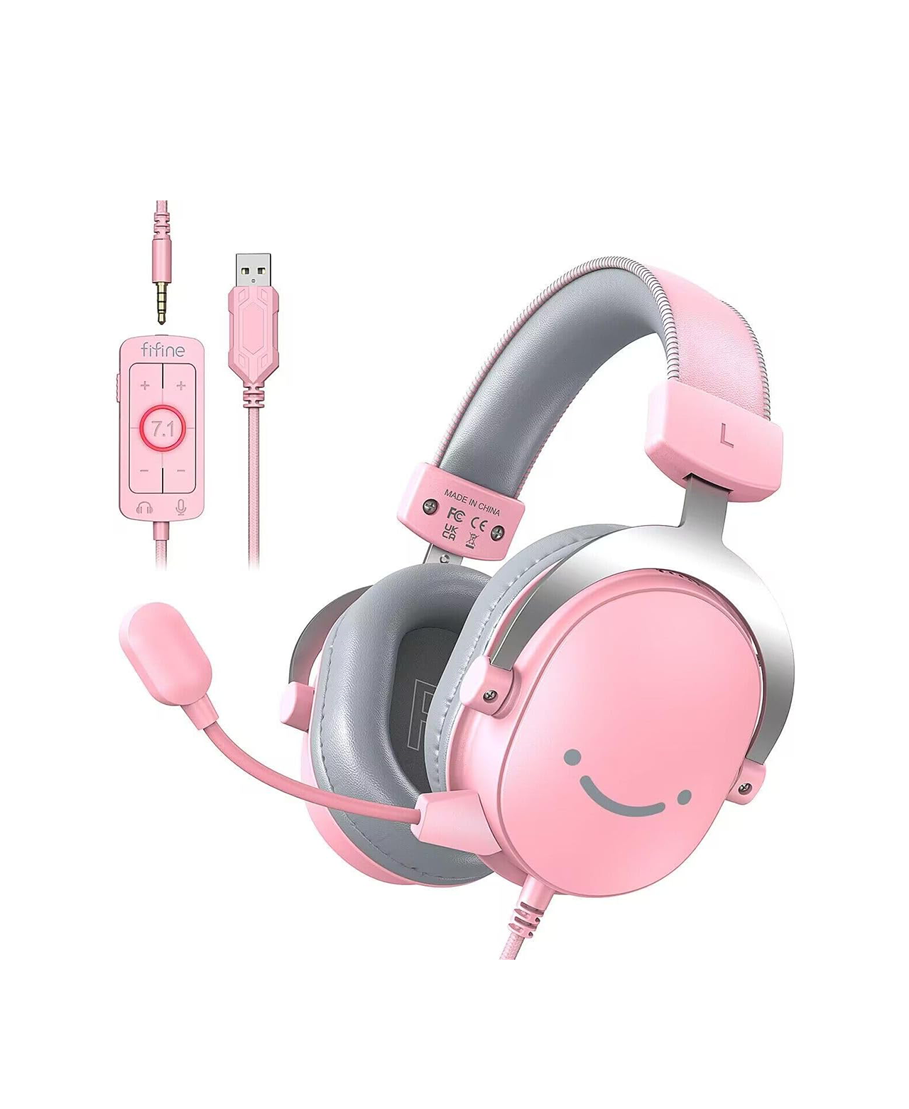 - [Colorful Impact] Elevate your gaming presence with a standout pink headset, designed for a stylish gaming statement. This USB gaming headphone, featuring a 3.5mm jack, guarantees impeccable audio across PC/PS4/PS5, Xbox, and Switch, ensuring seamless connectivity.