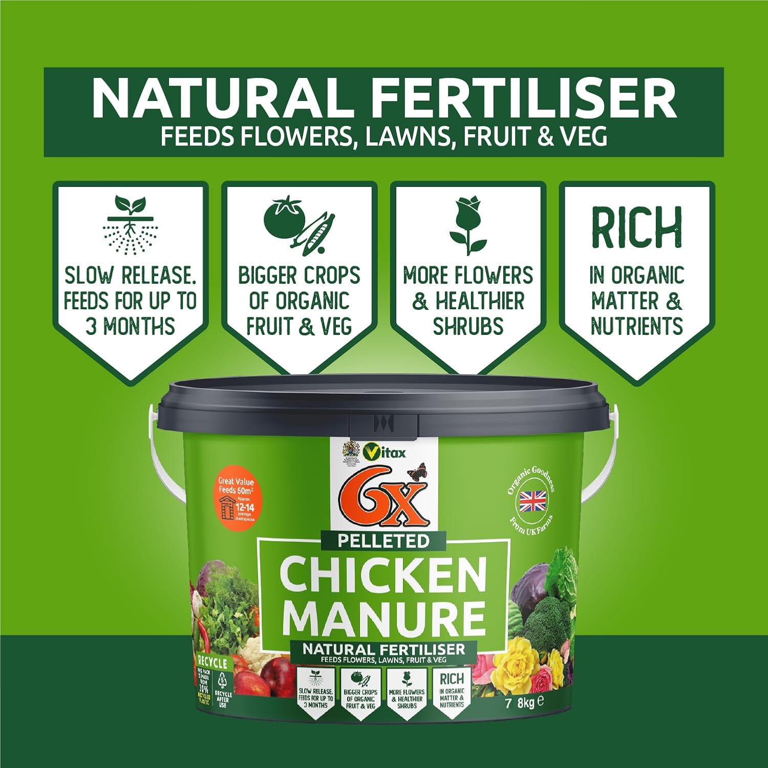 6X Natural Pelleted Chicken Fertiliser, Six Times More Nutrients Than Farm Yard Manure, Fully Composted, Weed Free – 7Kg