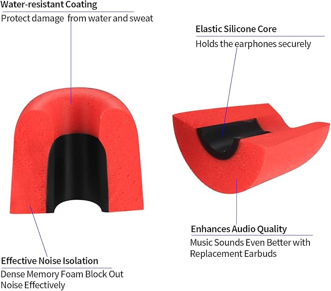 - 【Premium Material】The replacement earbuds are made of outstanding memory foam material, which is soft, fills with your ear perfectly but you won’t feel swelling, stay in-ear fit, and are pressureless to the ears, prolonged use also does not hurt the ears, give you the most comfortable listening experience.