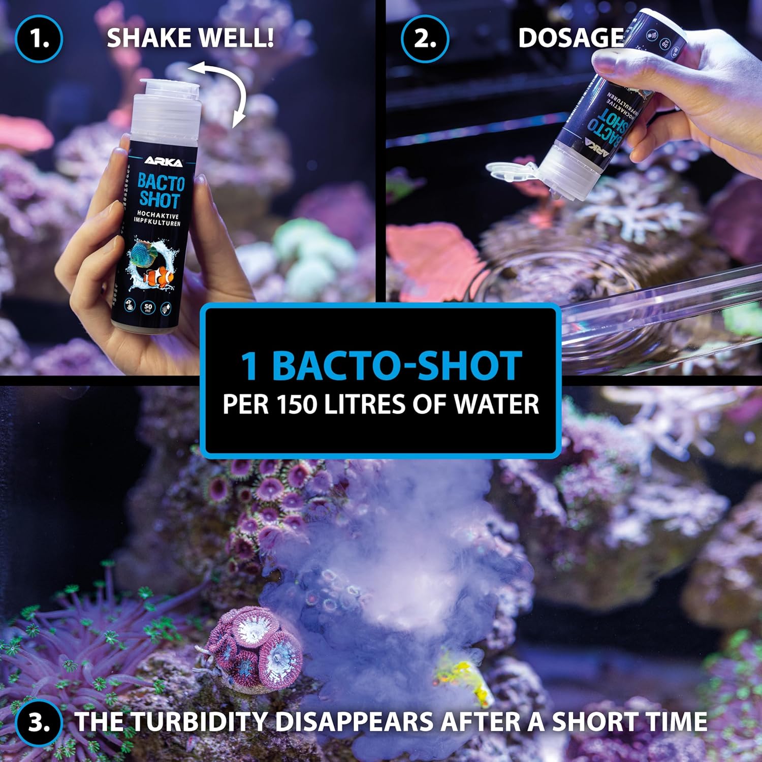 Aquarium bacteria shot 50 ml – clears cloudy water in 24 h – reduces ammonia & nitrite – biological live filter bacteria – ideal for new tanks & water changes – ARKA Bacto-Shot
