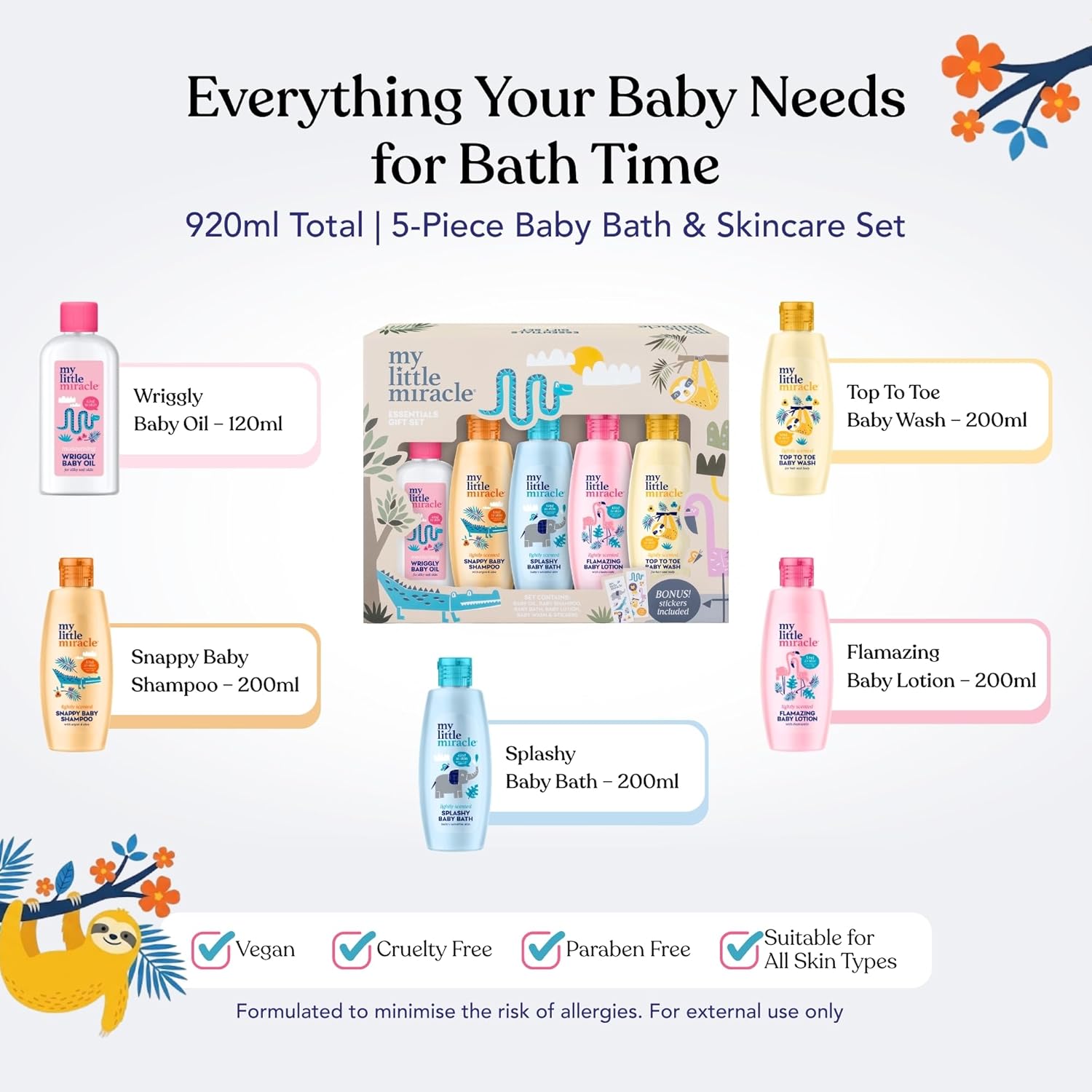 - Complete Baby Essentials for Newborns – This 5-piece baby bath set includes Flamazing Baby Lotion (100 ml), Baby Shampoo & Conditioner (100 ml), Baby Oil (100 ml), Baby Bath (100 ml) and Top to Toe Baby Wash (100 ml). A practical choice for mums and a thoughtful idea for new baby gifts.