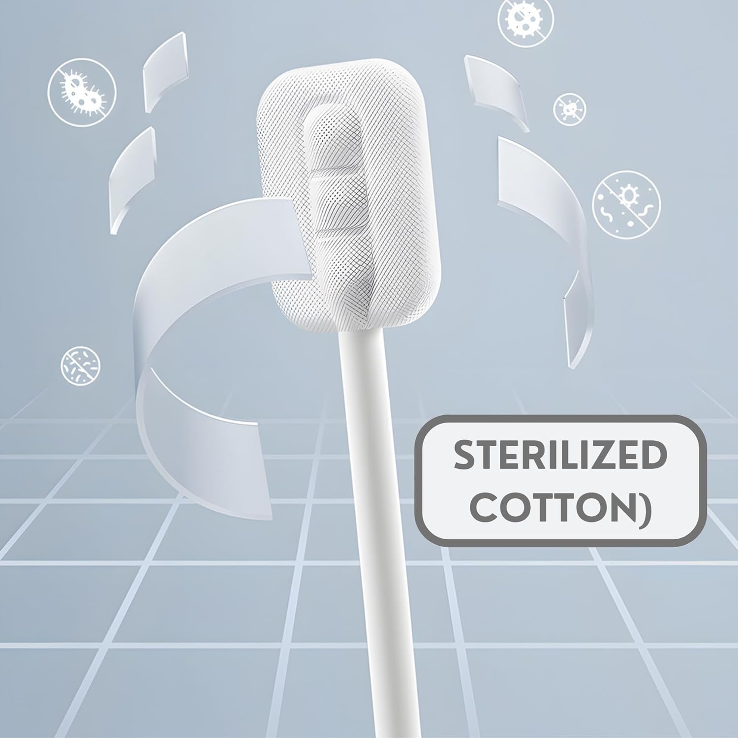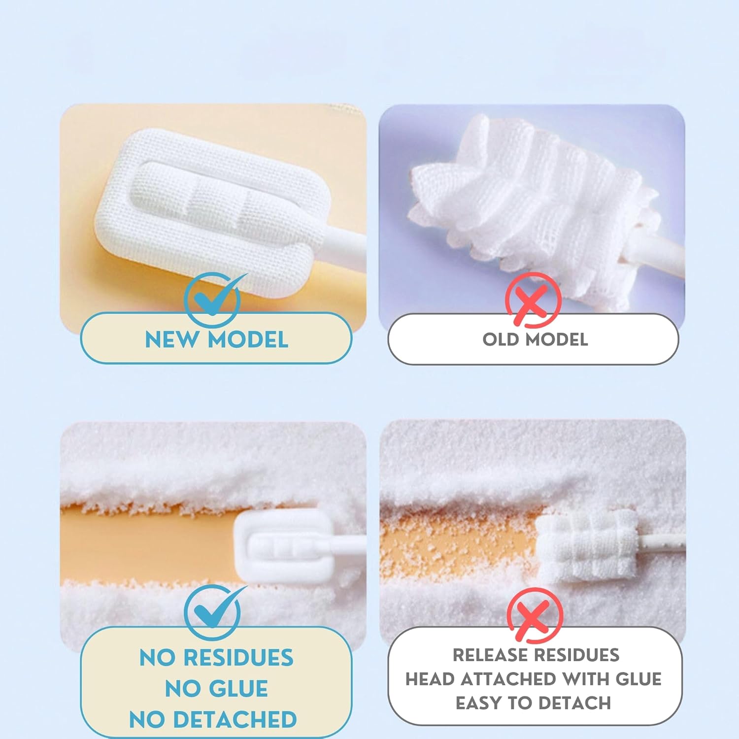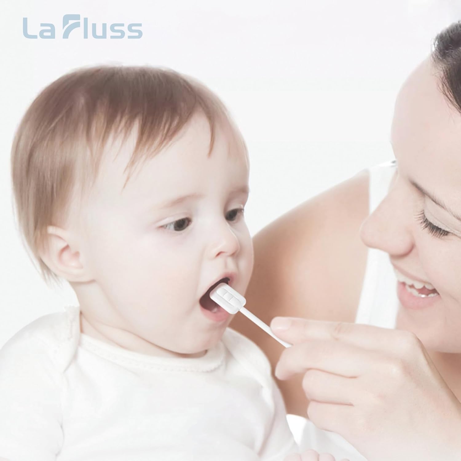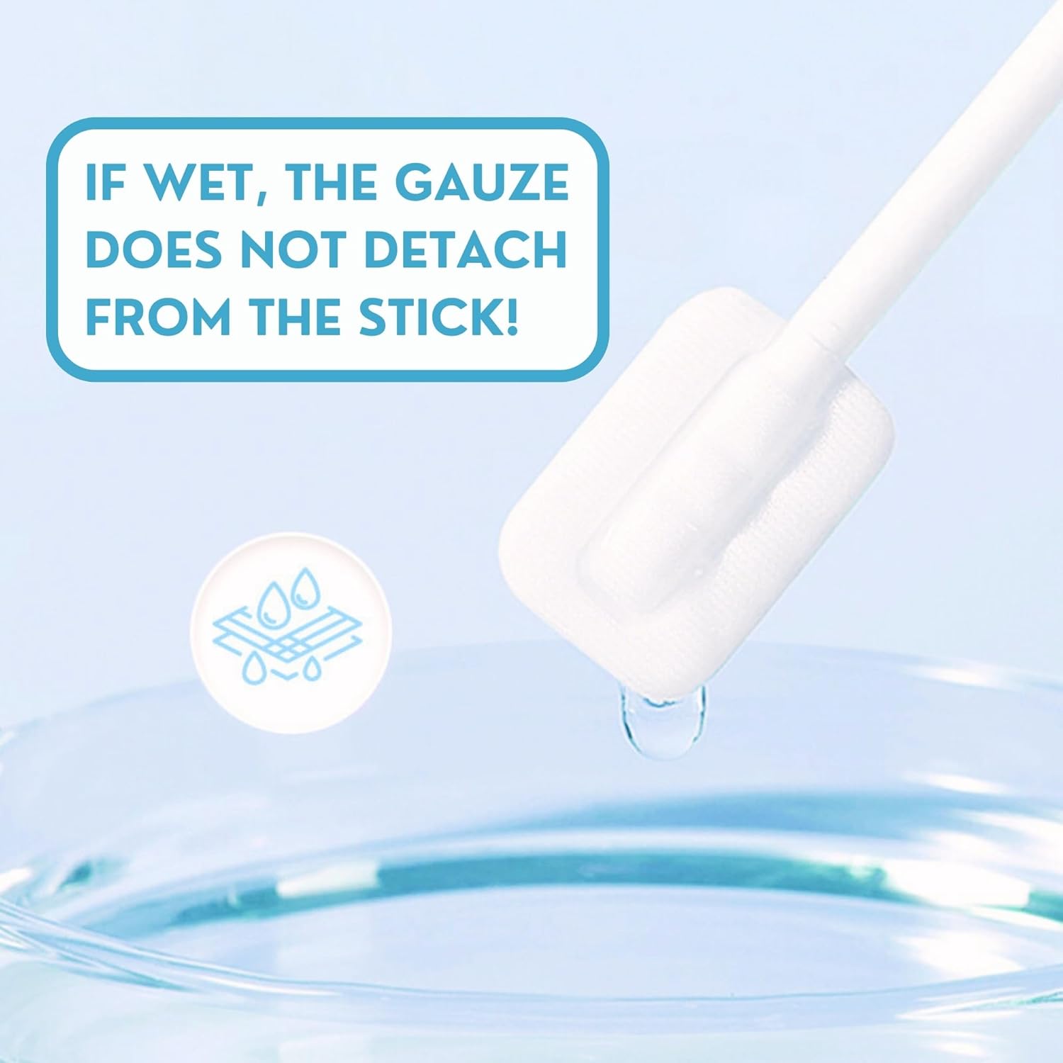 - 【Professional Design】The 3D wave soft head made of 100% medical gauze can clean the mouth 360°, making cleaning easier. The soft absorbent gauze is comfortable to use, fits baby’s gums, no fluorescent whitening agent, no bad smell. The paper handle is sturdy, flexible and long enough to easily reach every part of your baby’s mouth.