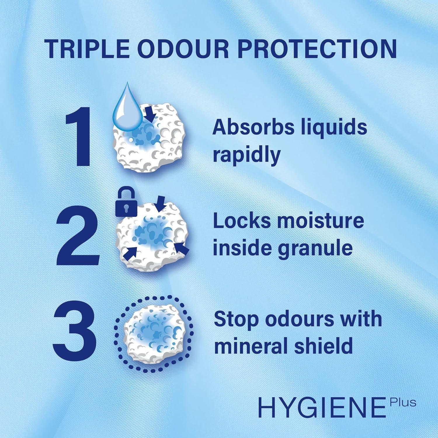 - Each granule of Catsan Hygiene Cat Litter ensures reliable and long lasting odour control, absorbing liquids and locking away moisture before odours can develop