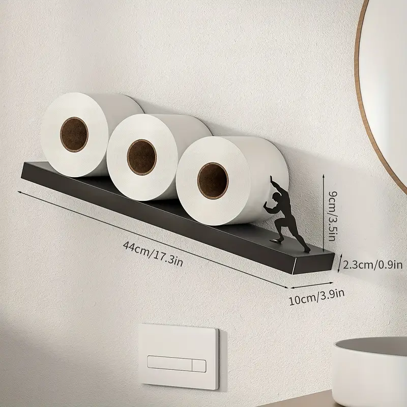 Creative Wall-Mounted Toilet Paper Holder with Silhouette Accent – Self-Adhesive, Wooden and Iron Material, Bathroom Tissue Roll Storage for Home and Kitchen Use – 1pc