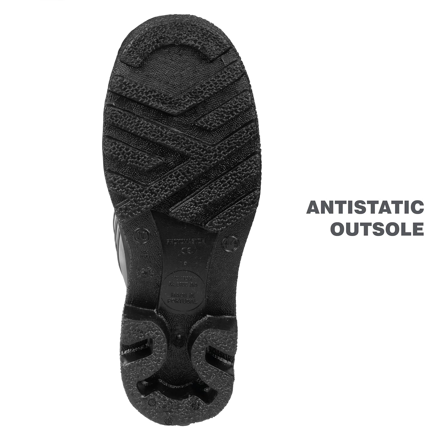 • This personal protective equipment has been specially designed with antistatic properties for protection against electrical hazards and an energy-absorbing heel formed for extra ergonomic support and comfort. Perfect for those long work hours.