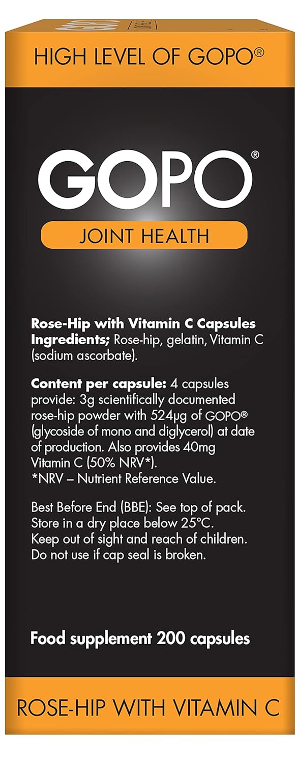 GOPO Joint Health 200 Capsules – Rose-Hip & Vitamin C – Helps maintain healthy & flexible joints