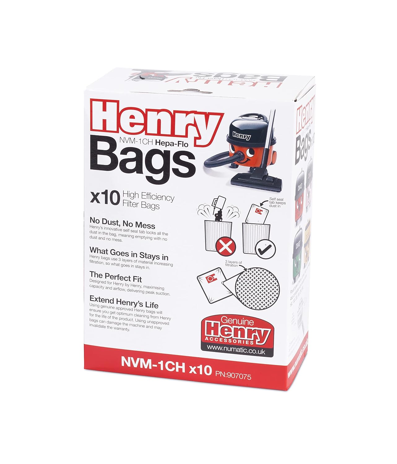 - Extend Henry’s life by using genuine Henry dust bags