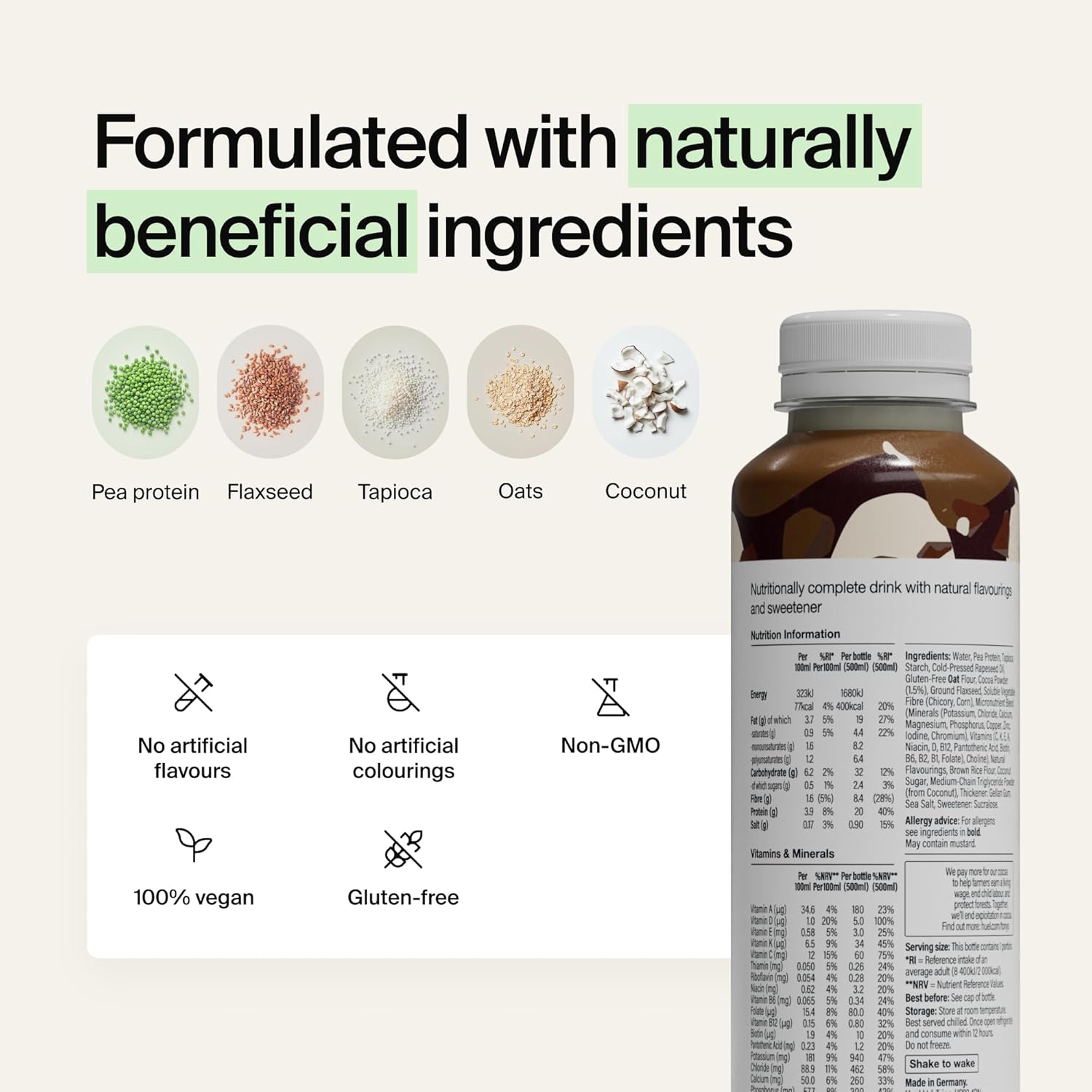 - COMPLETE MEAL IN A BOTTLE: Each bottle delivers up to 20g of plant-based protein, 26 essential vitamins and minerals, and a perfect blend of carbs, fats, and fibre to keep you energized throughout the day.
