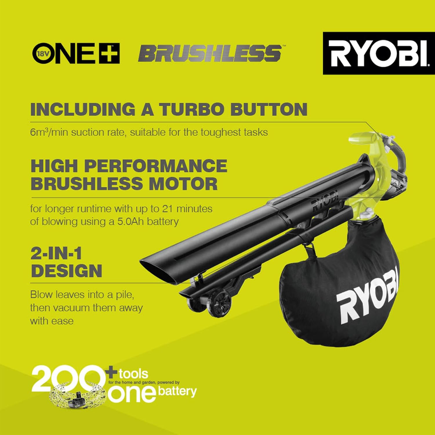• Turbo mode for tough jobs both blowing and vacuuming