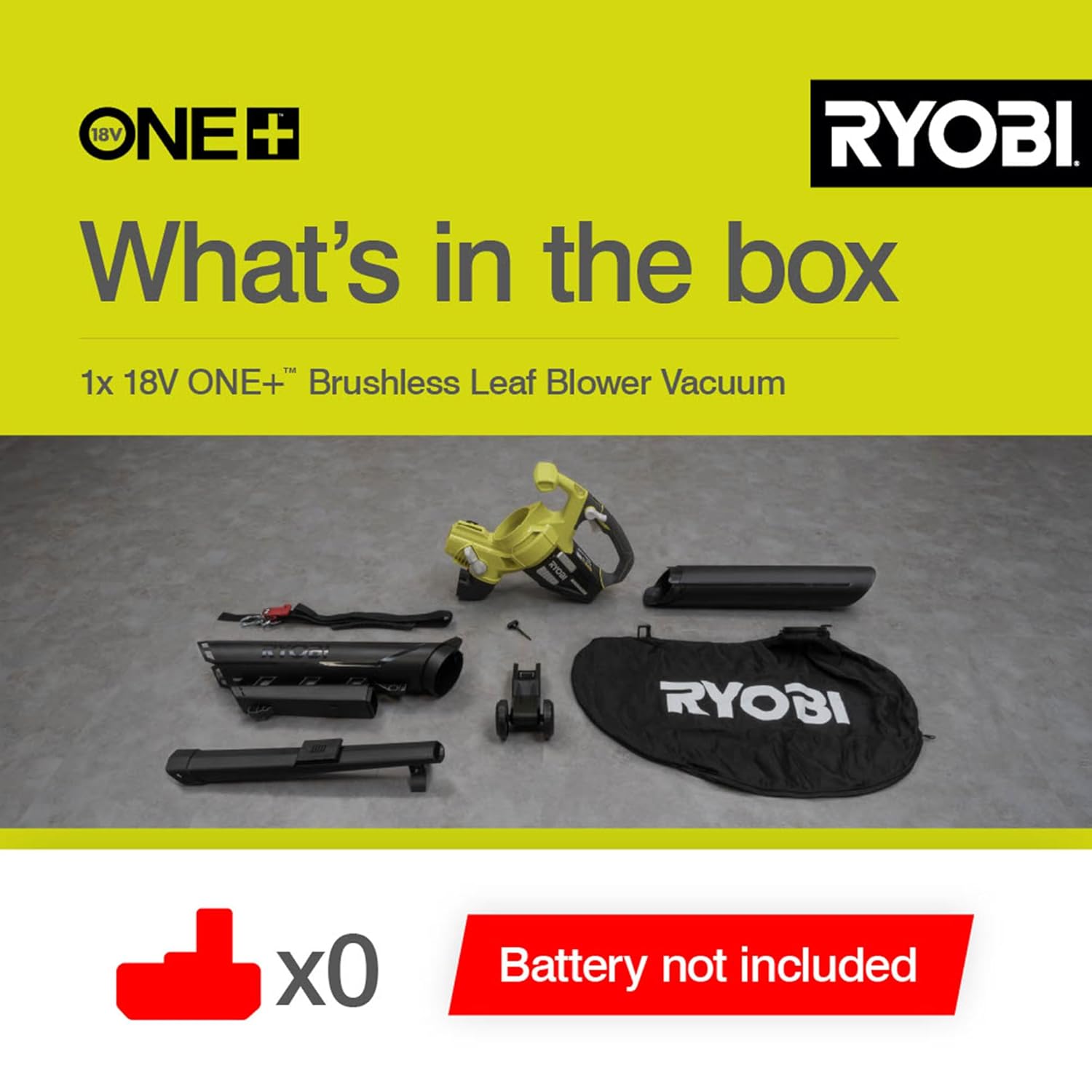 RYOBI OBV18 18V ONE+ Cordless Brushless Blow-Vac (Body Only), Hyper Green