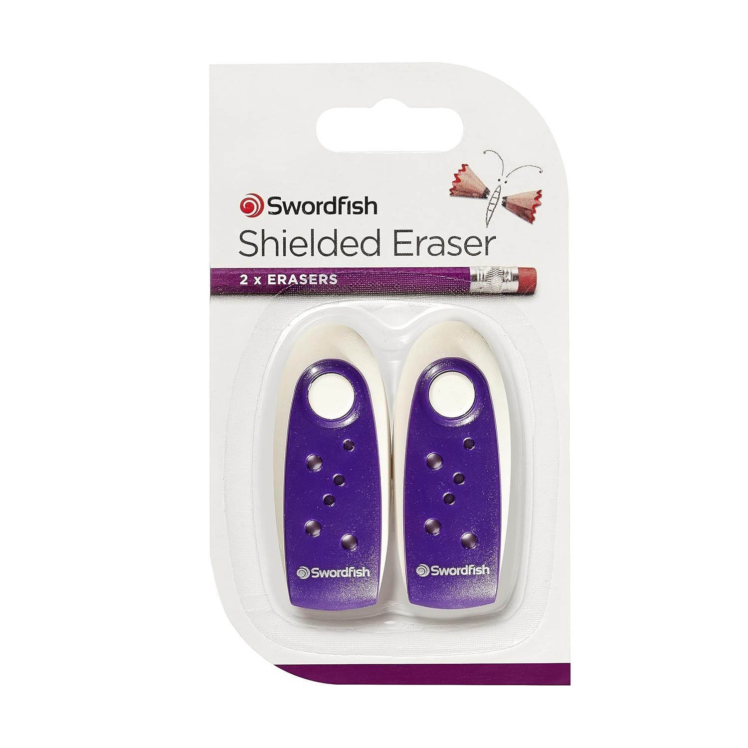 Swordfish Purple ‘Shielded’ Eraser [Pack of 2] PVC and Phthalate Free Eraser 40283