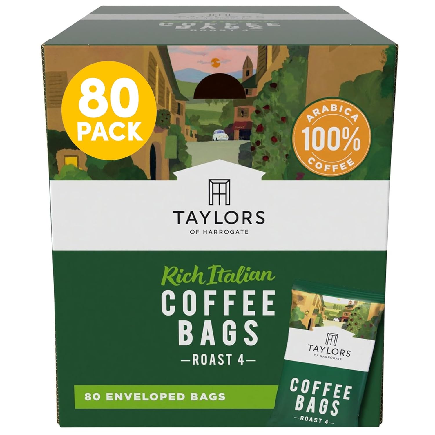 Taylors of Harrogate, Roast 4, Rich Italian Ground Coffee Bags, 80 Enveloped Bags (Pack of 1)