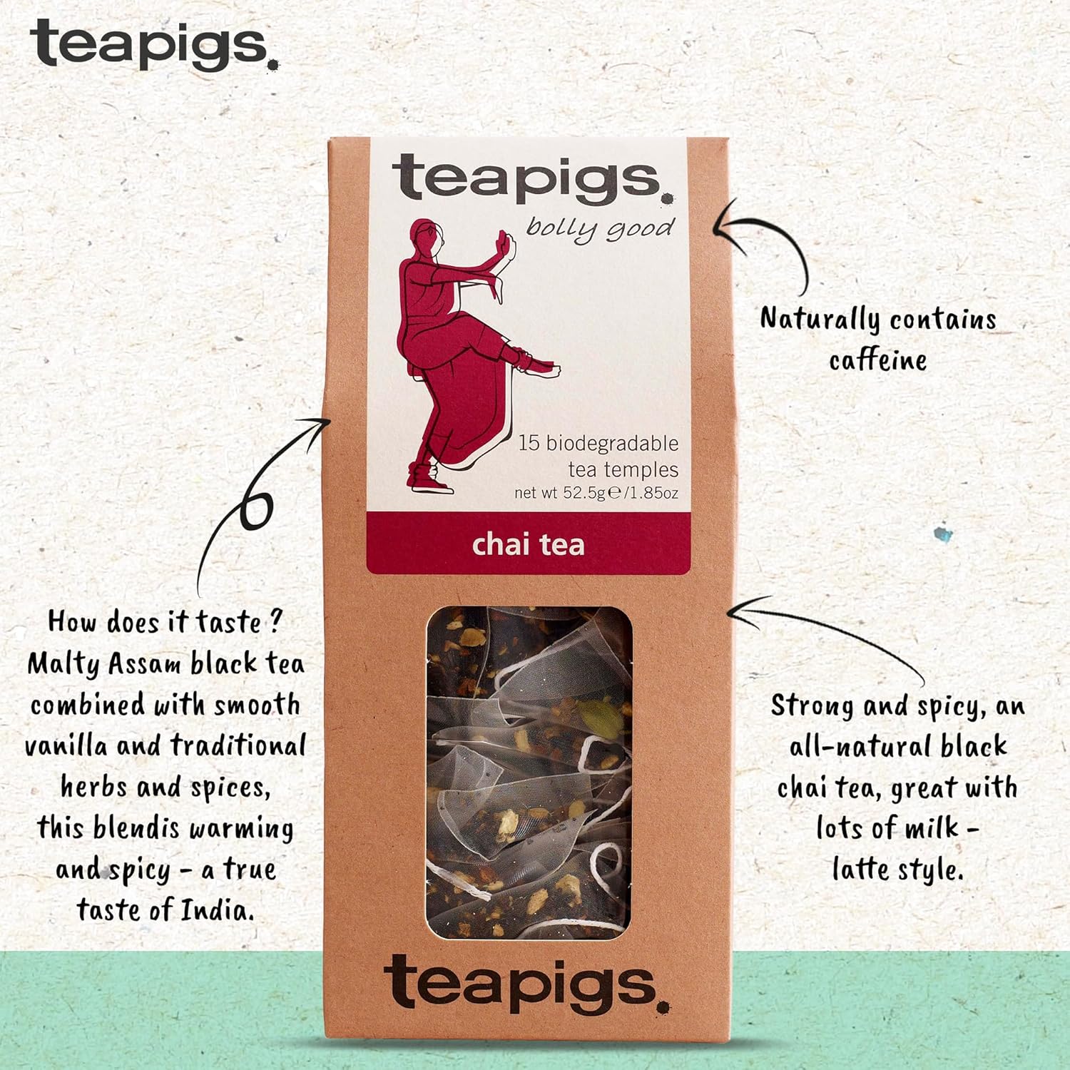 teapigs Chai Tea – Assam Black Tea Bags with Cinnamon, Ginger & Cardamom – Strong and Spicy Aromatic Blend – 15 Temples