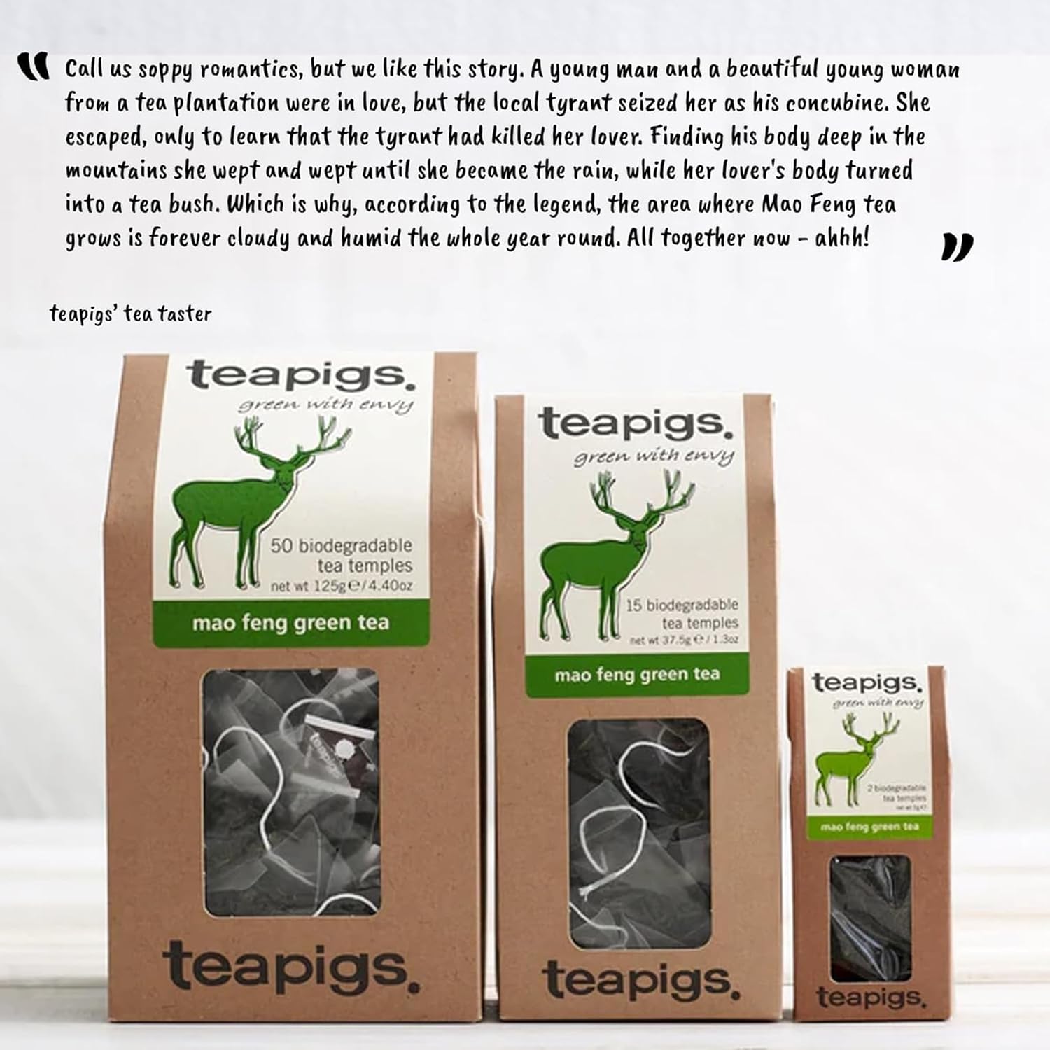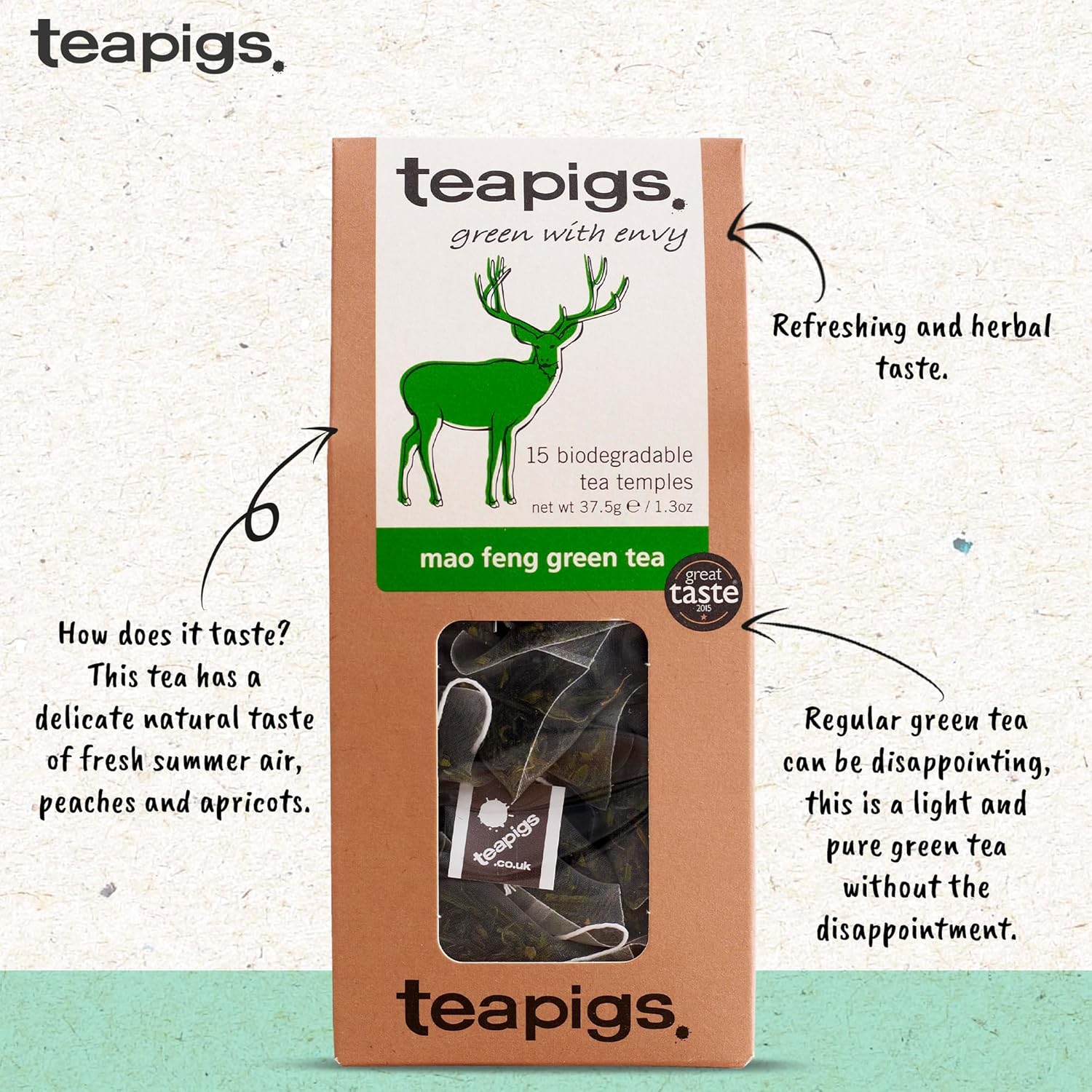 teapigs Mao Feng Green Tea – Green Tea Bags with Pure Mao Feng – Delicate and Natural Blend – 15 Temples