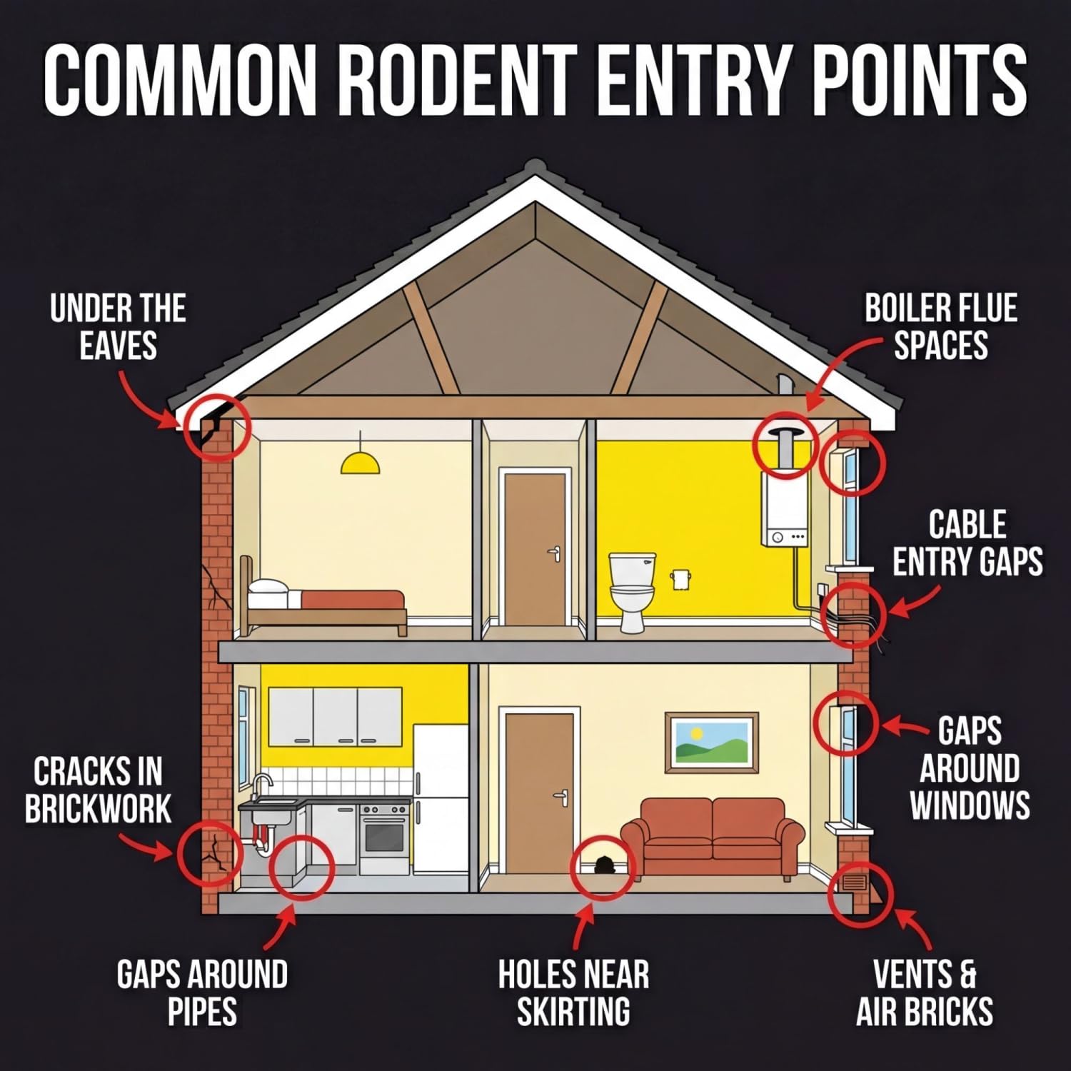 • PERMANENTLY BLOCKS ENTRY POINTS: Seal gaps around pipes, cracks in brickwork, holes near skirting boards, vents, window frames and any vulnerable area where rodents find their way in – mice can squeeze through holes as small as a pencil width