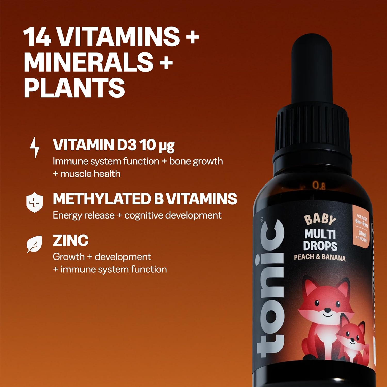 Tonic Health Baby Multivitamin Drops – 14 Baby Vitamins A, C, D, Minerals, and Plants – No Sugar/Preservatives – Kids Vitamins 6 to 36 mos for Growth and Development, Peach and…