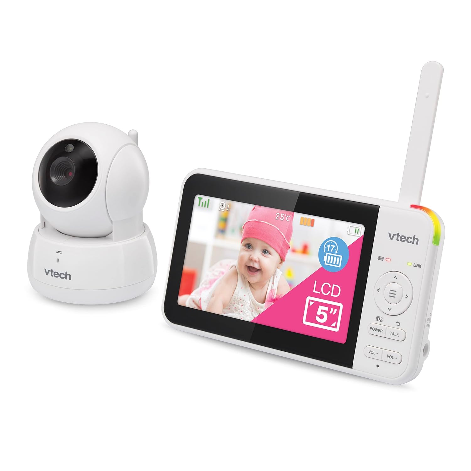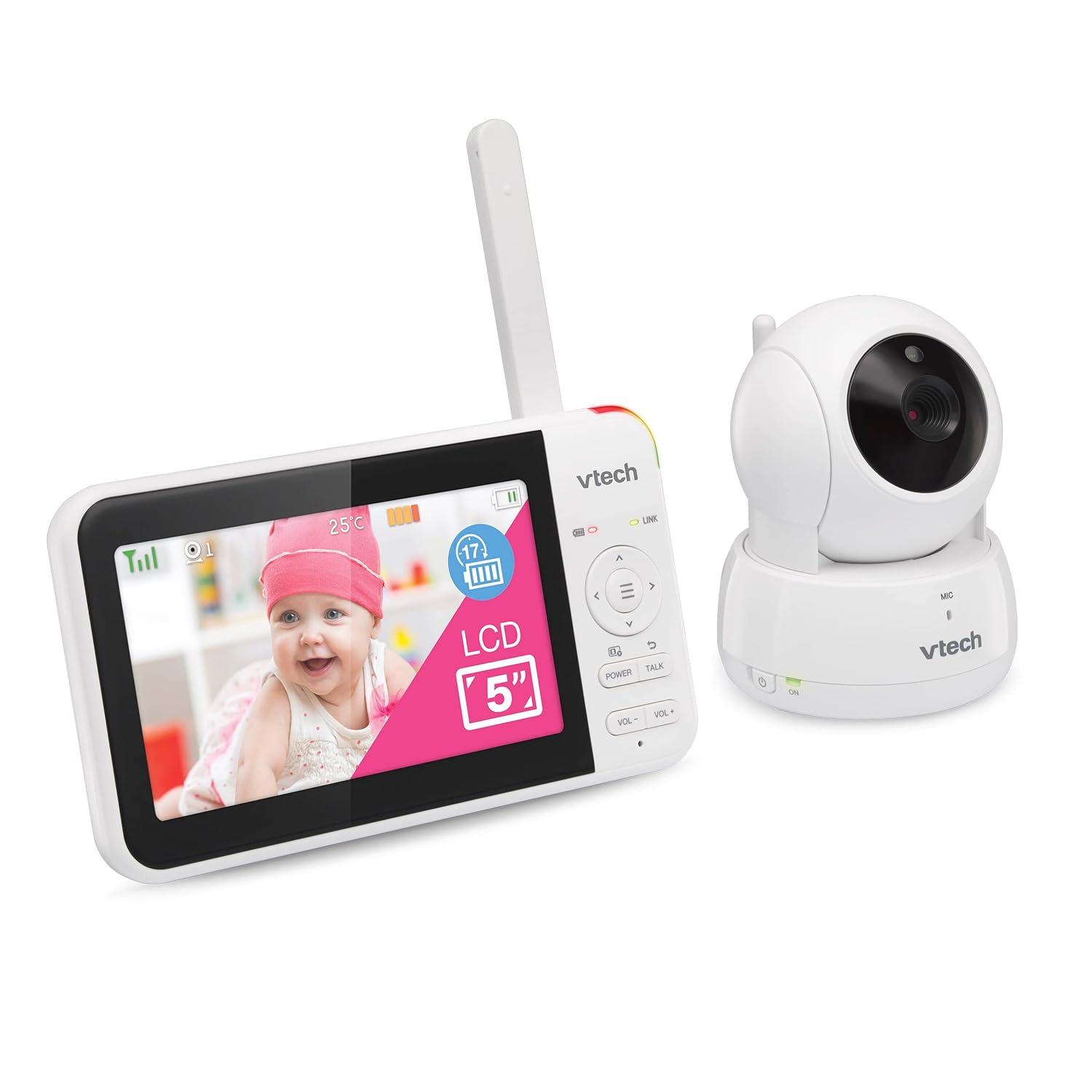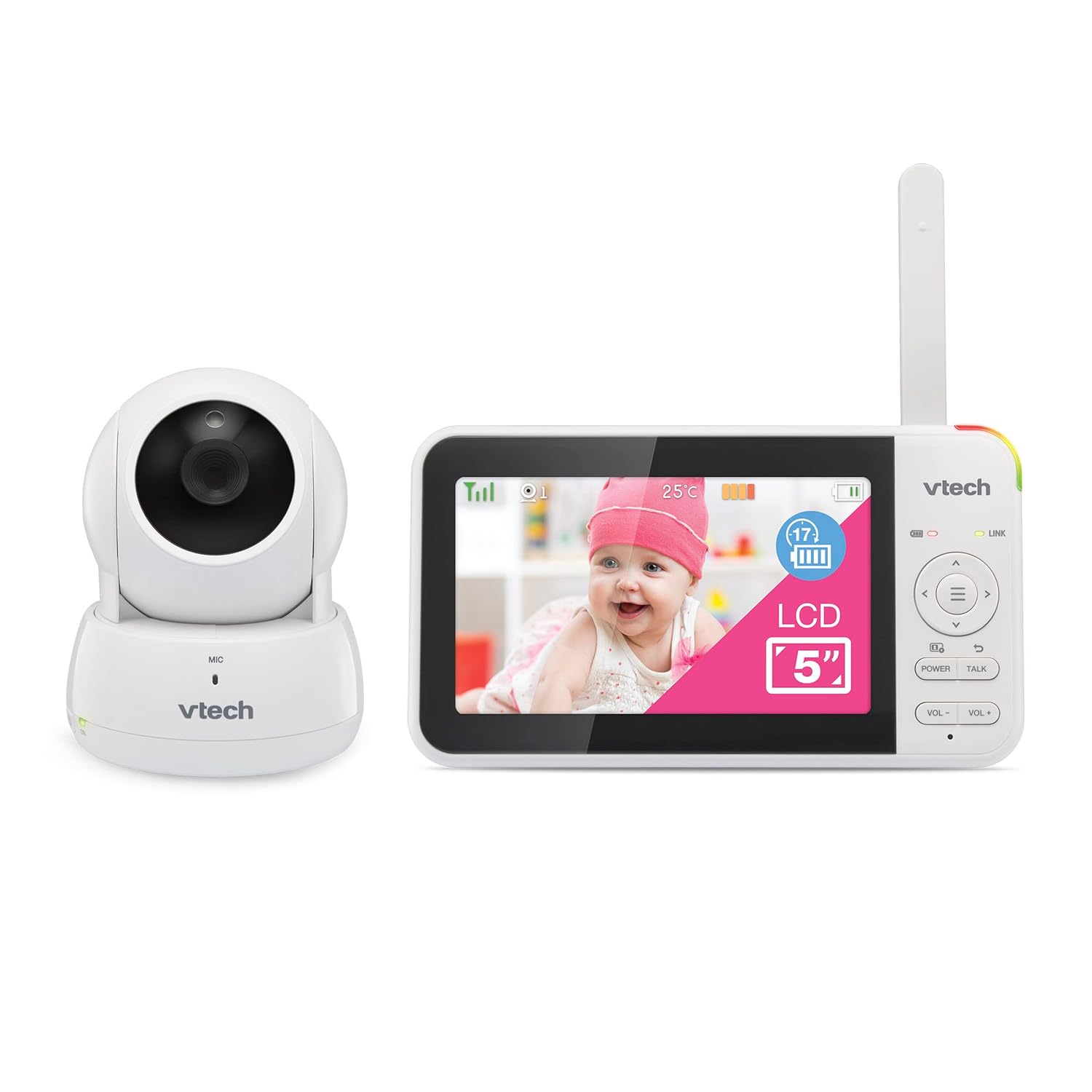 - [5 inch High Resolution LCD Display] – Check in on your little one with 5″ parent unit in High Resolution from any room in the home