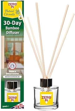 Zero In 30-Day Bamboo Diffuser – Natural Citronella Mosquito Repellent, Chemical-Free Insect Protection for Indoor & Outdoor Use, Eco-Friendly 30-Day Coverage